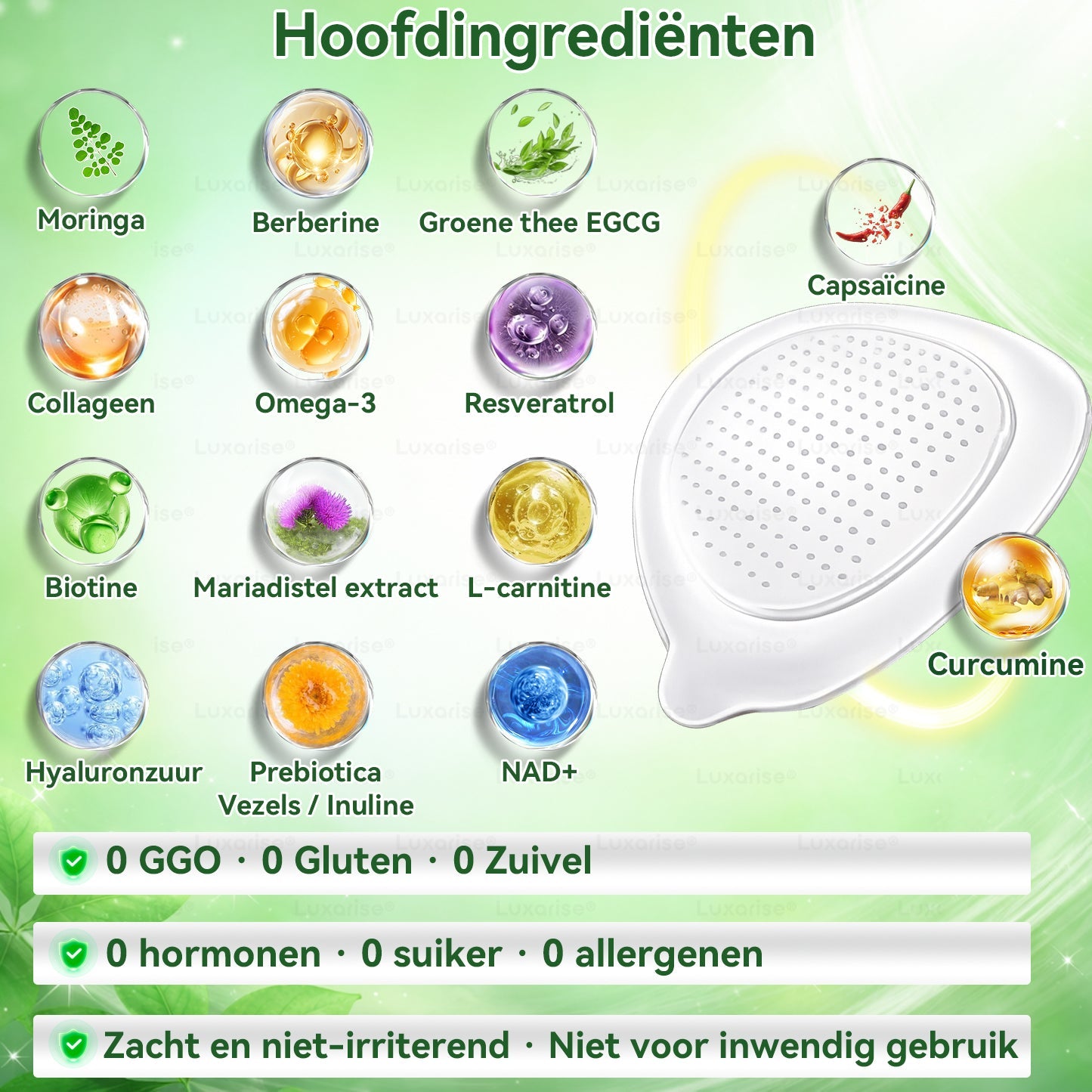 โ ย Veilig en effectiefย : Onze nano-microneedle pleisters zijn gemaakt met 100% natuurlijke ingrediรซnten en wetenschappelijk samengesteld, en hebben kwaliteits- en veiligheidscertificaten verkregen volgens Nederlandse en EU-normen.