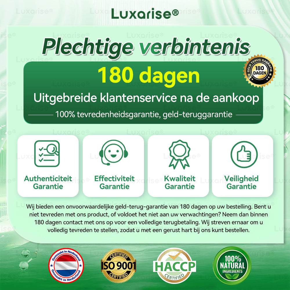 ๐คย 180 dagen verlengde garantie en 100% geld-terug-garantie.